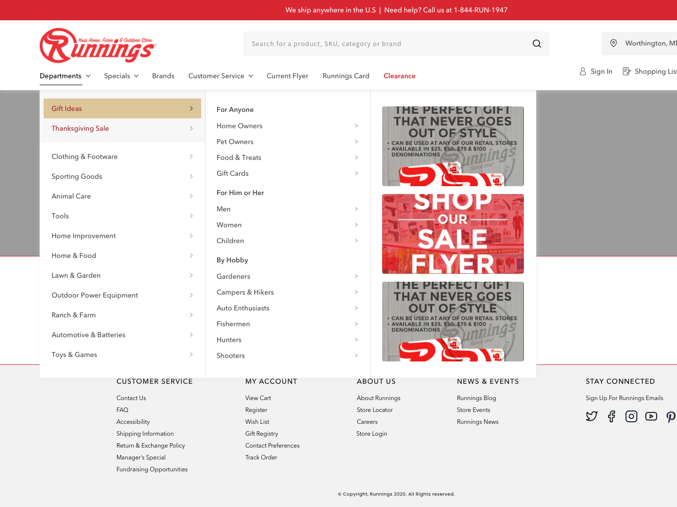 To help farmers and outdoor product consumers browse, buy, and receive Runnings products.